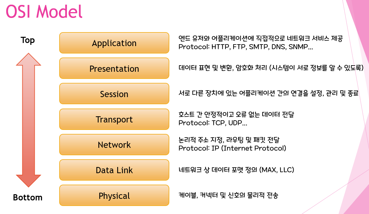 OSI의 7개 계층은 아래와 같다.