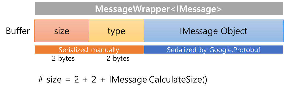 2. 수동으로 size와 type을 각각 직렬화 하고 그 뒤에 메시지를 직렬화한 버퍼를 붙여야한다.