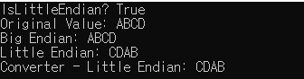 Console.WriteLine($"IsLittleEndian? {isLittleEndian}");