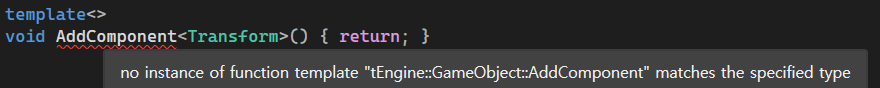 너무 이것저것 적어놓았는데, 이를 해결할 수 있는 가장 간단한 방법은 AddComponent와 GetComponent에 대해 템플릿 특수화를 하는 것이다. 명시적 특수화 (Explicit Specialization)을 통해 이 두 템플릿 함수가 Transform 타입에 대해서만 다른 동작을 하도록 할 수 있다.