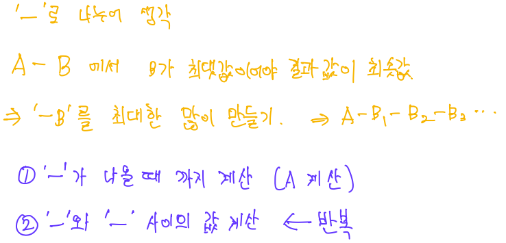 분할 정복처럼 '-'로 분리해주면 문제는 A 1개, B 여러개를 구하는 것으로 축약될 수 있다.