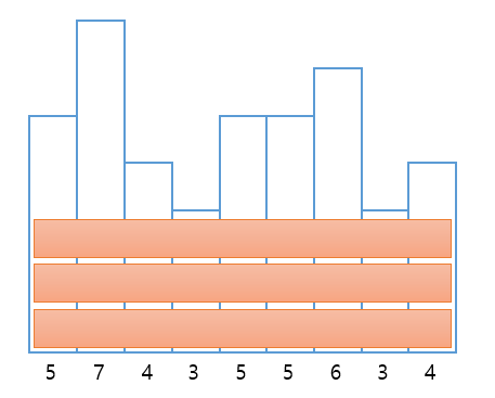 따라서 일단 위의 이미지와 같이 칠했을 경우 가장 유리한건 확실하다! (n개의 울타리 중 최솟값 높이인 3으로 3번 칠했다는 것을 기억하자)