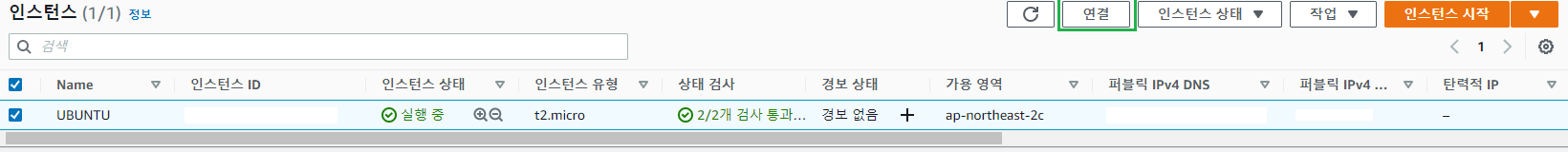 - EC2 인스턴스 연결 - 연결 클릭