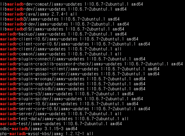 - MariaDB 관련 패키지 설치 리스트 확인