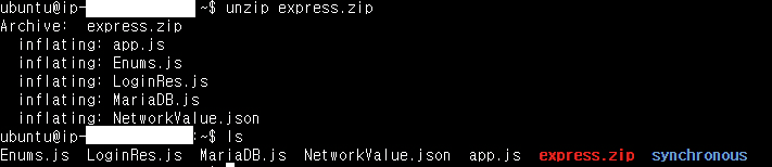 6. 아래 명령어를 통해 zip파일을 압축 해제 한다.
