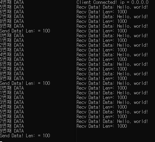 이미지로만 봐서는 잘 안보일 수있지만, 클라이언트쪽에서 10번 데이터를 보낸 후에 서버에서 data를 1000바이트를 읽는 것을 확인할 수 있다.